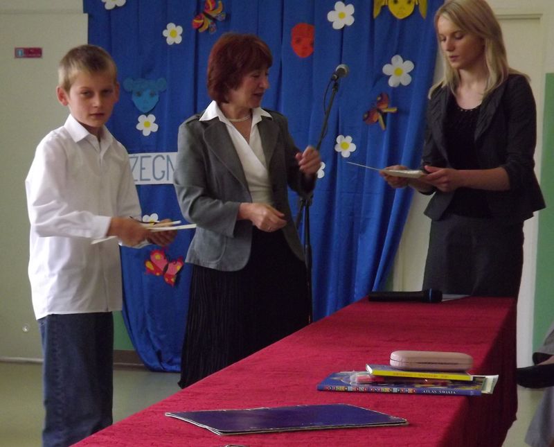 Potem nastąpiło wręczenie świadectw szóstoklasistom, listów gratulacyjnych i podziękowań rodzicom, świadectw z wyróżnieniem oraz nagród.