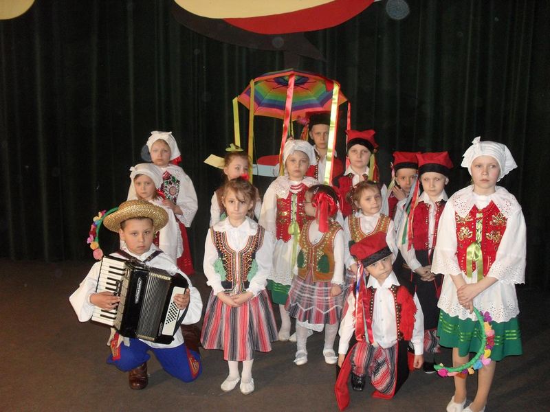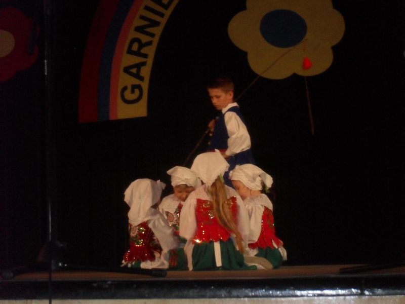 Przedszkolny zespół z Bezmiechowej prezentował taniec „Krakowiak” w ładnych kompletnych strojach krakowskich (wypożyczonych) oraz pląs do piosenki „Cicho konie” w strojach własnych – rzeszowskich.