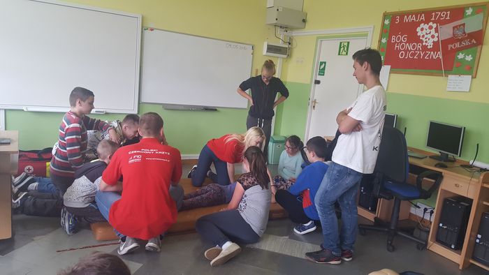 i mł. aspirant Katarzynę Antosz-Ulan. Do rywalizacji przystąpiły 3-osobowe drużyny ze szkół podstawowych. Uczniowie w pierwszej kolejności przystąpili do konkurencji praktycznej – jazdy rowerem, gdzie wykazali się niezwykłymi umiejętnościami podczas pokonywania toru przeszkód. Następnie zawodnicy musieli wykazać się wiedzą teoretyczną. Po zaciętej i bardzo wyrównanej walce w kategorii szkół podstawowych nasi uczniowie Bartosz Maślak, Damian Mokrzyński, Przemek Woźny zajęli IV miejsce.