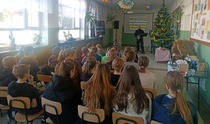 Naszą szkołę reprezentowały: Roksanka Józefczyk z oddziału zerowego, która zarecytowała wiersz pt. „Kołysanka” nieżyjącej, miejscowej poetki Marii Czerkawskiej oraz Kasia Latusek z kl. II, która wygłosiła utwór pt. „Smok” Jana Brzechwy. Obie dziewczynki otrzymały dyplomy oraz nagrody rzeczowe za udział w tym konkursie.