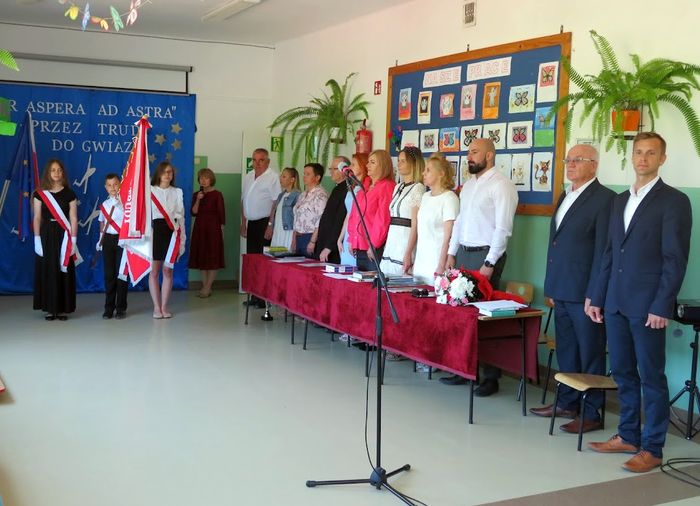 Na początku Pani Dyrektor przywitała przybyłych rodziców ciepłymi słowami. Następnie wszystkie mamy i wszyscy tatusiowie mogli podziwiać swoje pociechy w przygotowanym pod kierunkiem nauczycieli- wychowawców: p Kamili Fedak, p. Zofii Biskup, p. Janusza Kurconia, p. Joanny Latusek oraz p. Zofii Przygórzewskiej i p. Radosława Noska montażu słowno-muzycznym, tańcach oraz grze naszych pierwszoklasistów na keyboardzie.