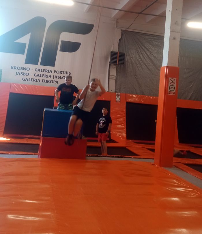 Dnia 21 czerwca 2021r. uczniowie naszej szkoły udali się na wycieczkę do Krosna do parku trampolin High Jump. Celem wycieczki było aktywne spędzenie czasu oraz odbudowywanie więzi po wielomiesięcznym nauczaniu zdalnym. Pod czujnym okiem nauczycieli, a przede wszystkim naszego wuefisty p. Pawła Króla uczniowie korzystali z szeregu atrakcji – trampolin akrobatycznych, liny, huśtawek oraz ściany wspinaczkowej. Wszyscy z radością skakali na trampolinach na różne sposoby. Ogromnym zainteresowaniem cieszyła się lina, na której można było poczuć się jak Tarzan w dżungli.