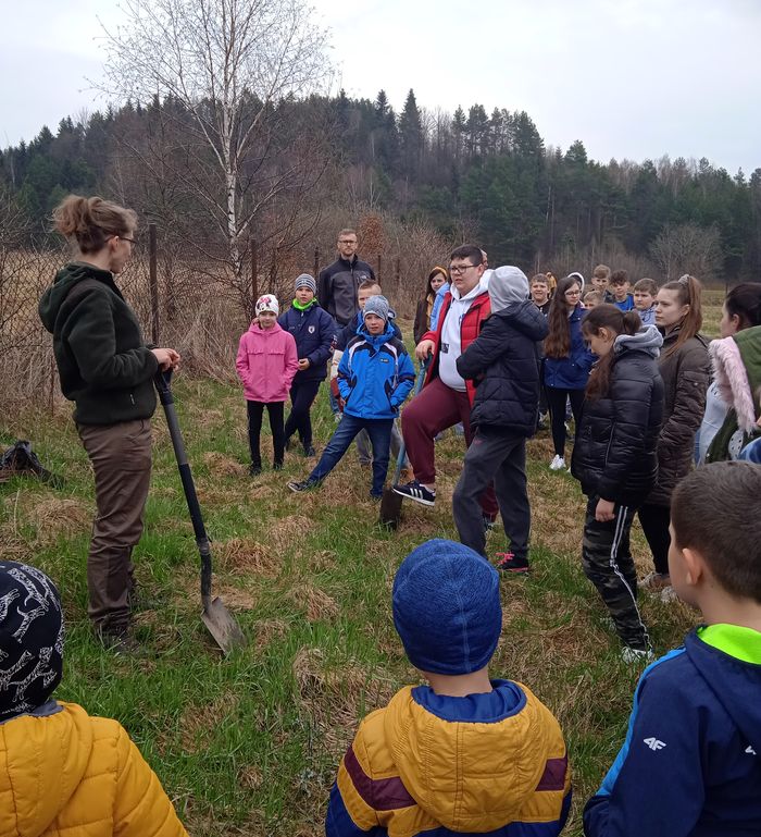Dzieci bardzo aktywnie uczestniczyły w zajęciach, ponieważ była to wyjątkowa i ciekawa lekcja przyrody. Na zakończenie wszyscy wspólnie udaliśmy się na teren przyszkolny, aby zasadzić drzewka. Każda klasa zasadziła swoje, nadając mu wyjątkowe imię.