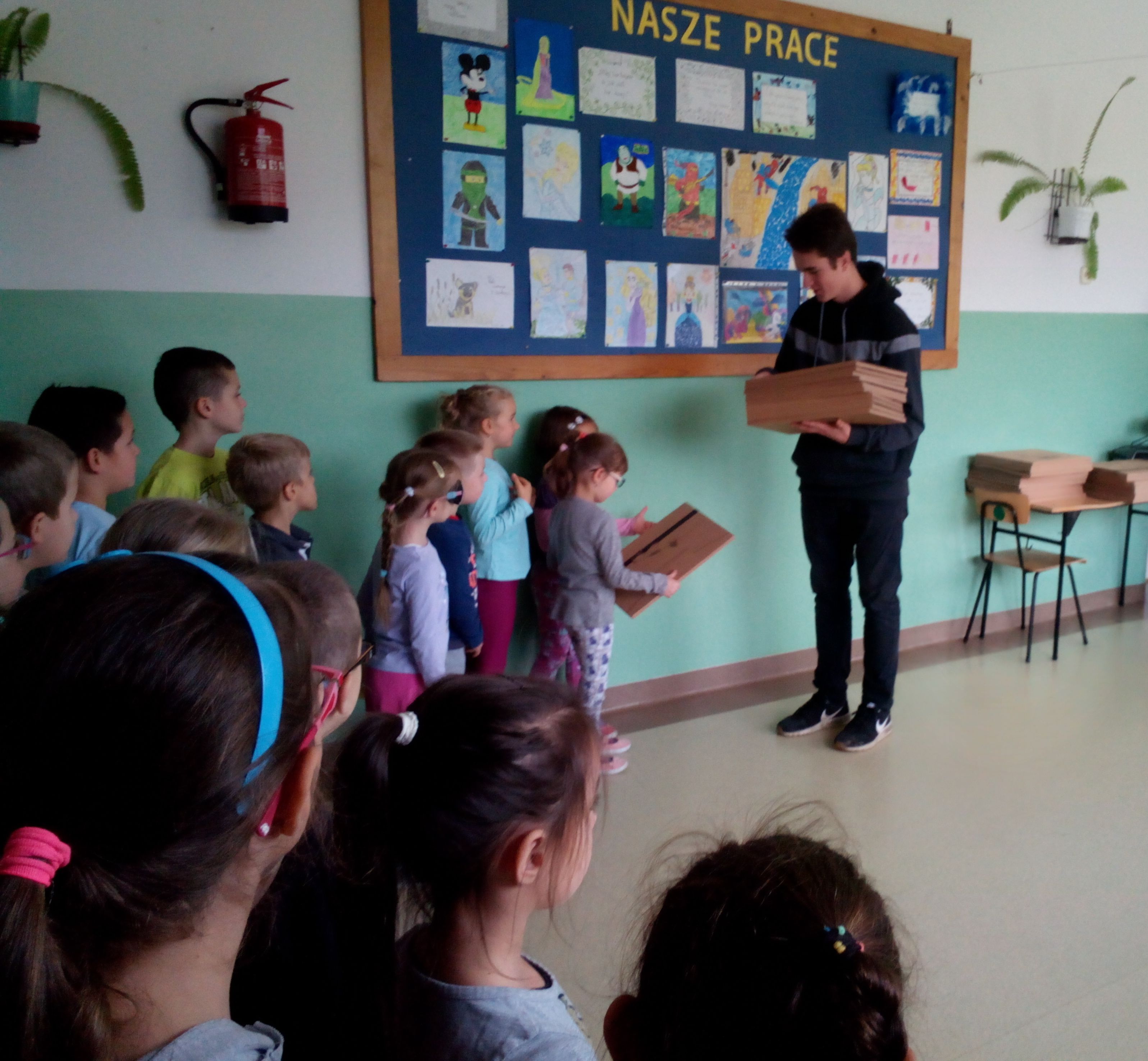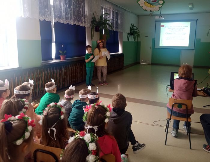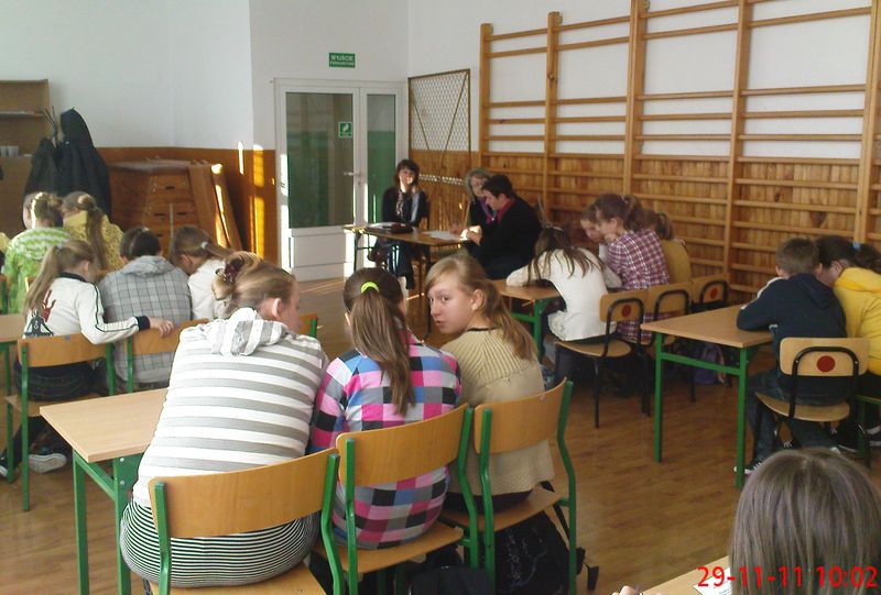 Konkurs, zgodnie z przewidywaniami, rozpoczął się o godz. 10. Wszyscy uczestnicy wraz z opiekunkami zgromadzili się na sali gimnastycznej i tam zajęli przygotowane dla swoich drużyn miejsca. Po krótkim powitaniu i zapoznaniu się z zasadami konkursowymi zabrali się do I etapu, czyli rozwiązywania testu, rebusów i krzyżówki. Po upływie określonego czasu uczestnicy przystąpili do części ustnej. Tu każda drużyna wybierała sobie numer pytania z puli za 1, 2 lub 3 punkty. I tu zaskoczenie dla organizatorów, bo wszyscy – jak jeden mąż – decydowali się na najtrudniejsze pytania – za 3 punkty. Każdy chciał iść na całość. Rywalizacja była zacięta, a emocje sięgały zenitu, gdy ktoś nie znał odpowiedzi, a inni wiedzieli. Wtedy ci, którzy zgłosili się jako pierwsi mieli możliwość zdobycia 3 dodatkowych punktów.