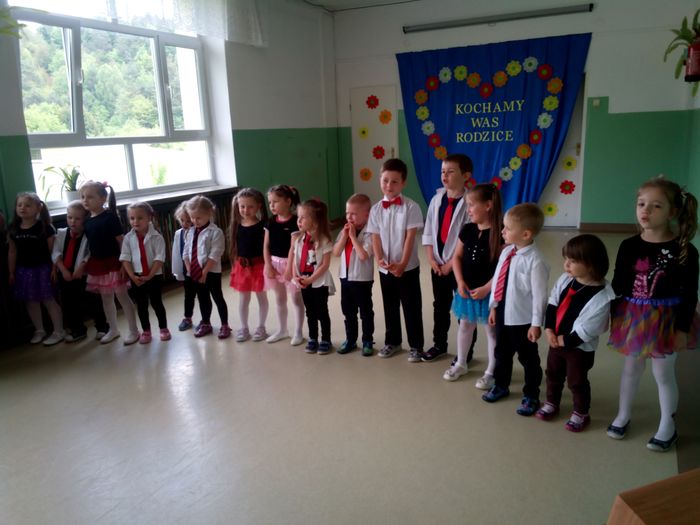 Jako pierwsze zaprezentowały się dzieci z klas 2 i 3 tańcząc do piosenki „Despacito”. Następnie pod czujnym okiem pani Zosi każde dziecko wyrecytowało wierszyk dla swojej Mamy. Klasa 1, choć troszeczkę stremowana również wspaniale poradziła sobie z recytacją wierszyków. Odwagi dodawał pierwszakom pan Janusz. Na koniec wszyscy wspólnie zaśpiewali piosenkę śląc Mamom najlepsze życzenia: