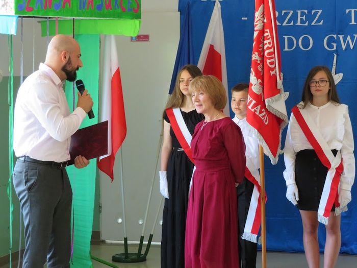 Uroczystość zakończenia roku szkolnego zaszczycił również swoją obecnością pan Burmistrz Miasta i Gminy Lesko Adam Snarski, oraz Dyrektor Leskiego Centrum Edukacji i Sportu pan Tomasz Wojtanowski. Obaj panowie podziękowali Pani Lucynie Matuszewskiej za jej wieloletnią ciężką pracę i zasługi dla szkoły.