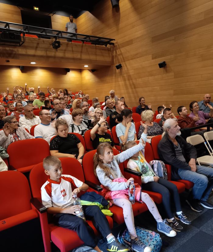 We wtorek 19 września 2023 roku, zerówkowicze oraz uczniowie klas 1, 2 i 3 pojechali do kina do Bieszczadzkiego Domu Kultury w Lesku na seans filmowy pod tytułem ,,O psie, który jeździł koleją”.