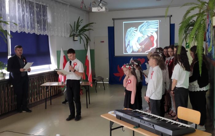 Uczniowie klas II, III, IV, V, VI i VIII pod opieką pana Pawła Krasulaka przygotowali piękny program artystyczny. Recytowali wiersze i śpiewali pieśni patriotyczne, które pozwoliły zrozumieć rozterki i uczucia walczących o niepodległość. Całość została wzbogacona prezentacją multimedialną i uwieńczona uroczystym odśpiewaniem hymnu narodowego.