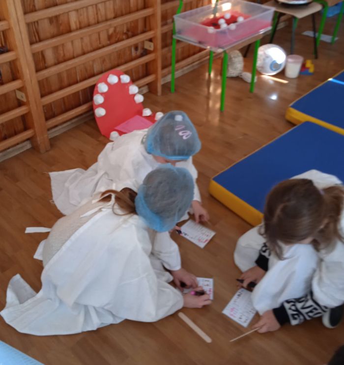 Wszyscy wiemy, że zawód lekarza jest niezwykle wymagający, trudny, ale przy tym bardzo interesujący. Nasze dzieci miały okazję poczuć się jak prawdziwi lekarze- badały pacjentów, wypisywały recepty oraz przeprowadzały operację.