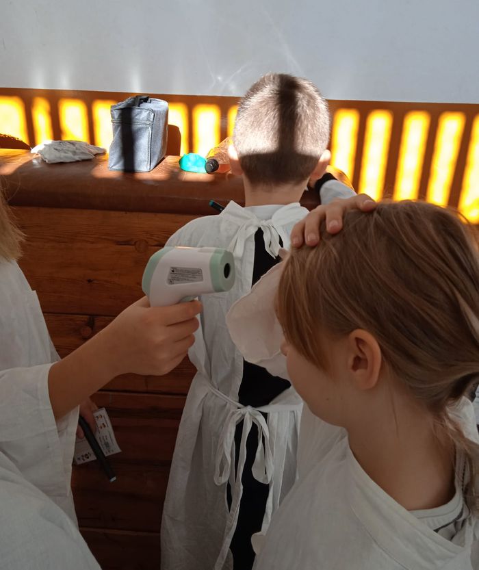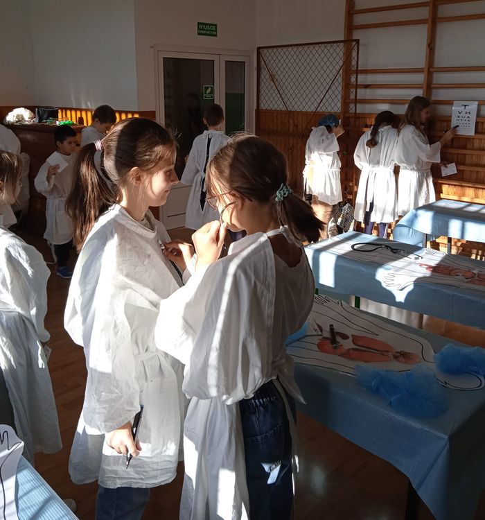 Każde dziecko miało również możliwość  wcielić się w rolę lekarza rodzinnego, który przeprowadza  badania lekarskie- badanie wzroku, słuchu, ważenie czy mierzenie wzrostu. Każdy również wypisał receptę.