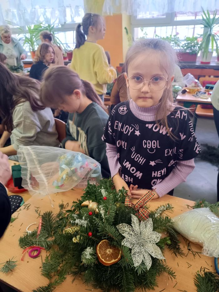 Z tej to okazji 14 grudnia, przedszkolaki oraz wszyscy uczniowie naszej szkoły, uczestniczyli w warsztatach bożenarodzeniowych, które poprowadziła florystka pani Stanisława Kardasz. Działania plastyczne wspierały również panie woźne oraz nauczyciele.