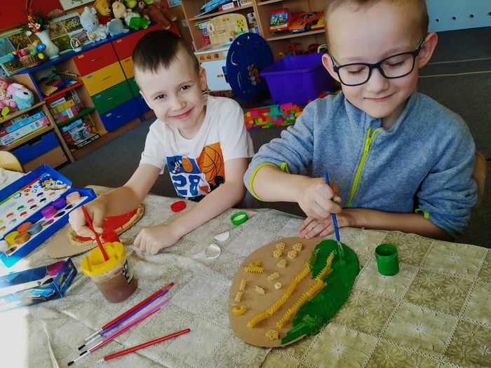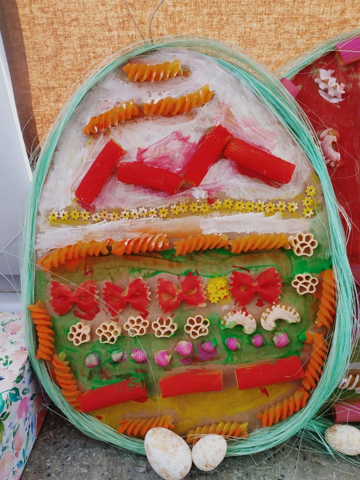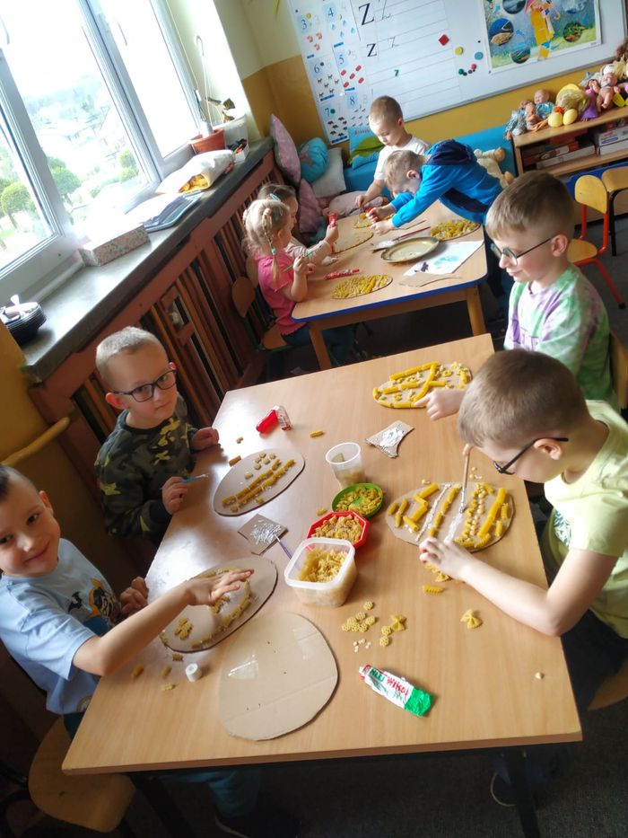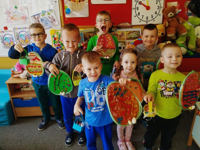 Dzieci z oddziału przedszkolnego z okazji zbliżających się Świąt Wielkanocnych wykonały duże makaronowe pisanki do powieszenia, oraz jak co roku wspólnie z paniami piękne palmy. Do domu na Święta zabrały także drobne upominki w postaci koszyczków ze smakołykami :)