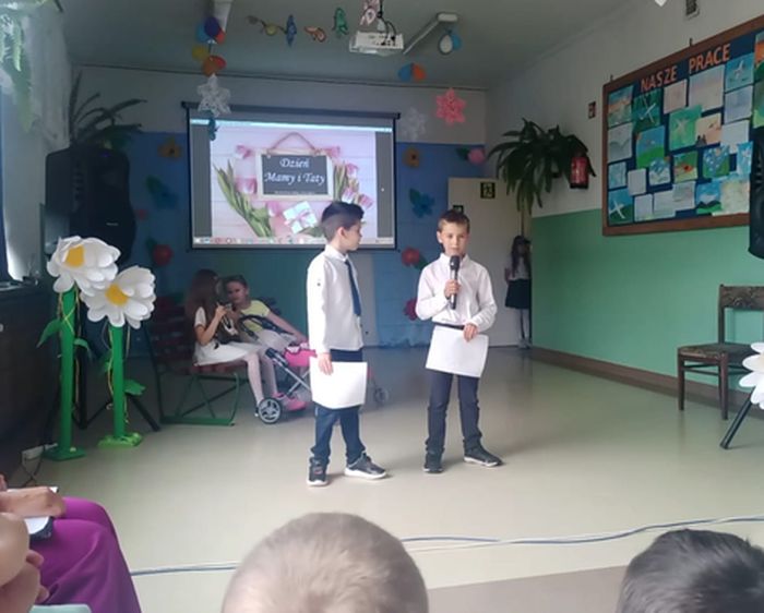W tym roku w naszej szkole święto Mamy i Taty odbyło się 23 maja. W tym wyjątkowym dniu dzieci z przedszkola oraz uczniowie szkoły słowem, śpiewem i tańcem pragnęli wyrazić swoim rodzicom miłość oraz wdzięczność za ich rodzicielską dobroć i cierpliwość, za serce, które tak wiele rozumie i wybacza.
