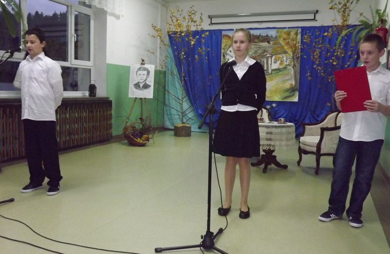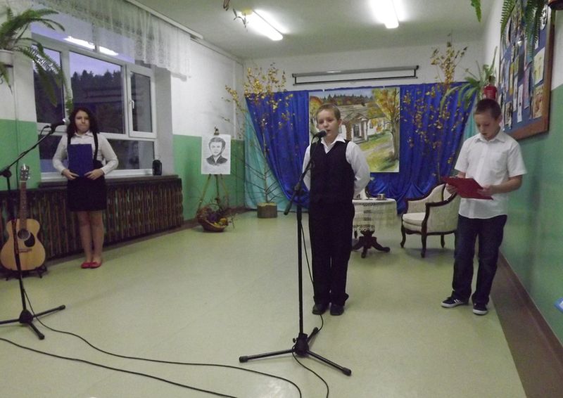 Na początek zaplanowano występ uczniów i przedszkolaków. Luiza Baraniewicz i Miłosz Kuzio przybliżyli nam nieco postać Marii Czerkawskiej. Fakty z życia poetki przeplatane były utworami jej autorstwa. Mateusz Szymański recytował wiersz „Las szumi”, Brygida Szramowiat – „Lipa”, Julia Latusek – „Schowałam się za drzewa” i Ania Mazuriewicz z Bartkiem Stramem – „Na listeczku jaworowym”.