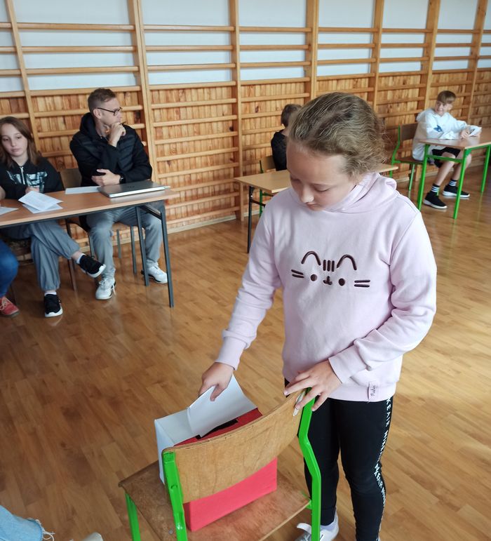 Każdy z uczniów naszej szkoły mógł oddać głos na swojego kandydata. Nad całością wyborów czuwali opiekunowie samorządu – pani Ania Wnęk oraz pan Paweł Król a także uczniowie Iwona Mardosiewicz i Aleksandra Jaromin. Na nich spoczywała odpowiedzialność za prawidłowy przebieg i zachowanie tajności głosowania.