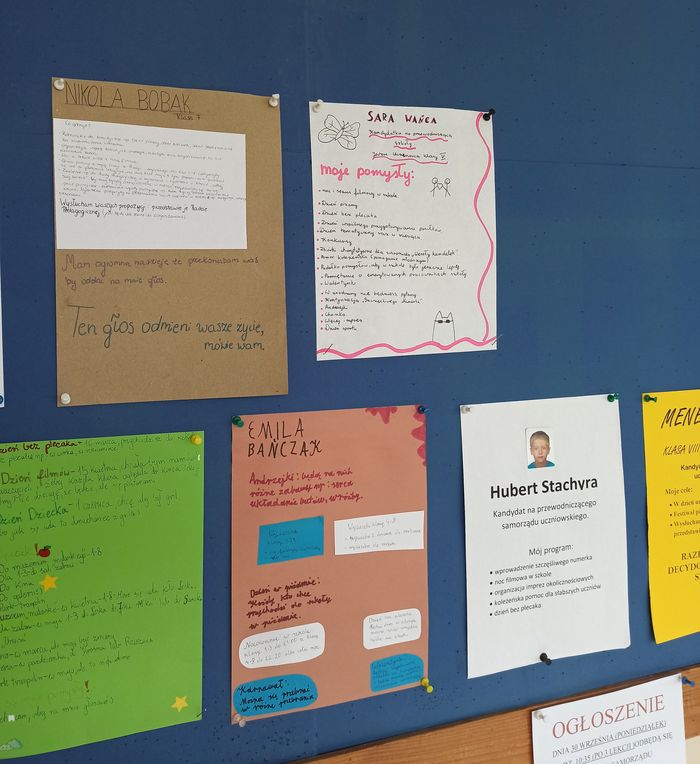 30 września w naszej szkole odbyły się wybory do Samorządu Szkolnego. Kandydaci ubiegający się o funkcję w samorządzie mieli okazję przedstawić swoje programy, które od paru dni były zawieszone na tablicy na korytarzu. Każdy mógł się z nim zapoznać, by podjąć decyzję. Nie zabrakło chwytliwych postulatów: „dzień bez jedynki” czy „większa ilość dyskotek”.