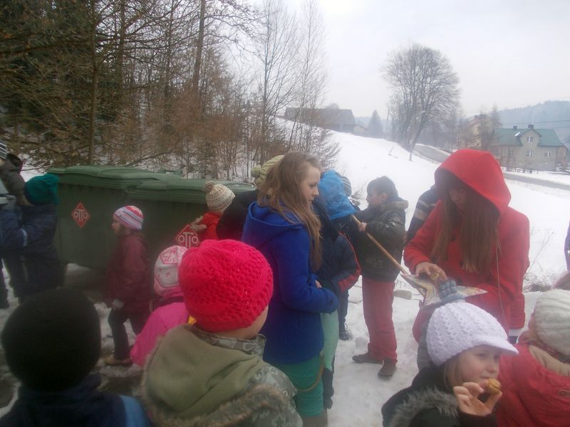 Aby to ułatwić Samorząd Szkolny, pod opieką pani Jolanty Mysza, przygotował „Ekologiczną Marzannę” wykonaną z różnego rodzaju śmieci (plastykowe butelki, różne puszki, gazety, nakrętki itp.). Następnie ową szkaradną pannę, symbolizującą zimę, wszyscy uczniowie odprowadzili nie w stronę rzeki, ale pojemników na śmieci, gdzie „posegregowano ją” i wrzucono do właściwego śmietnika.