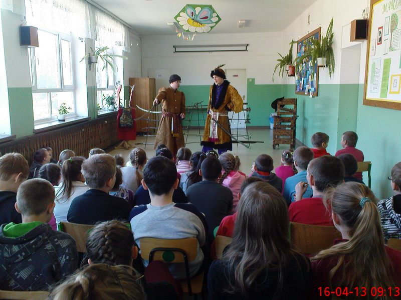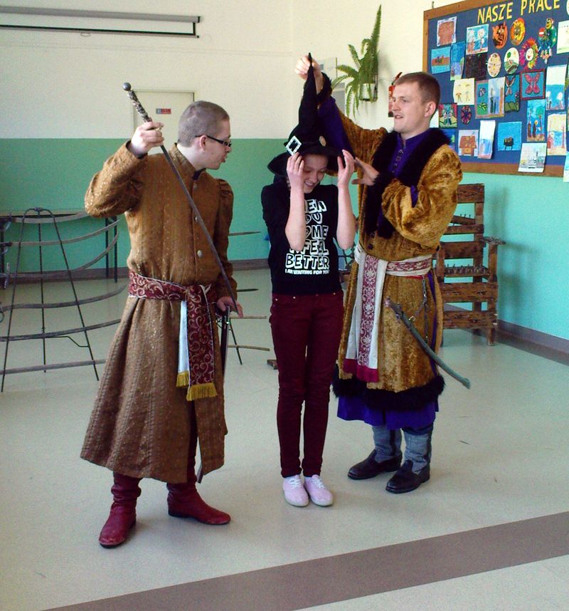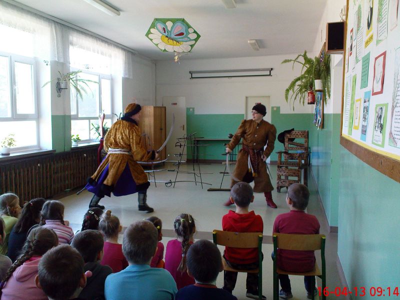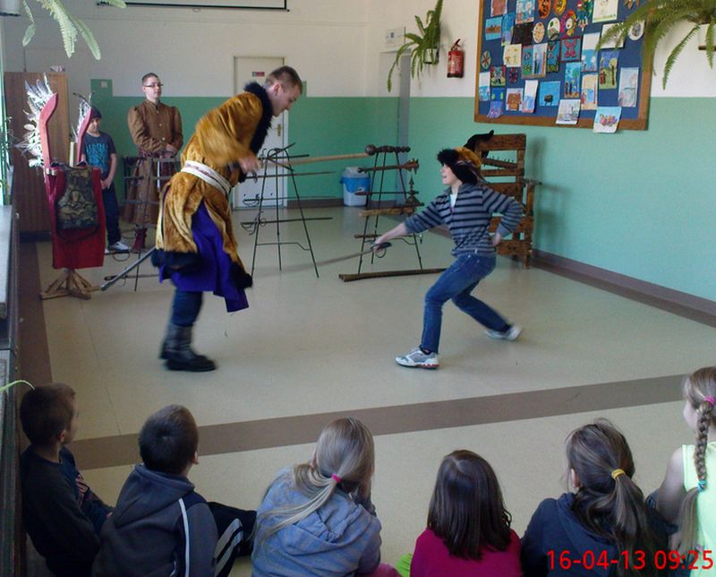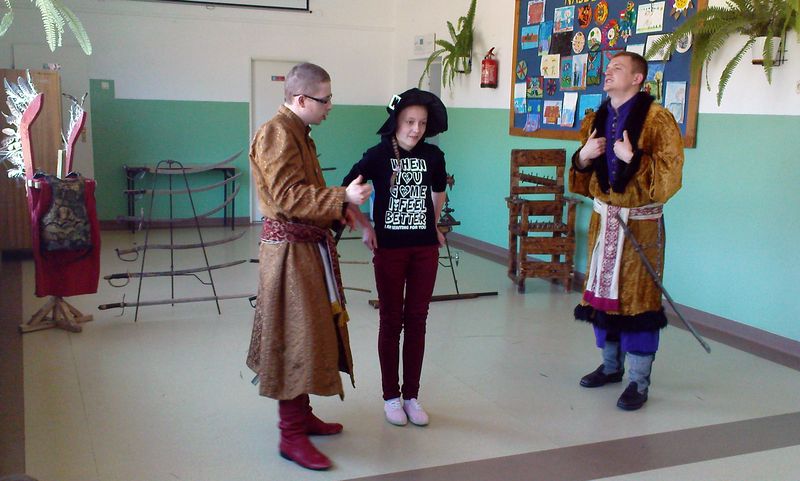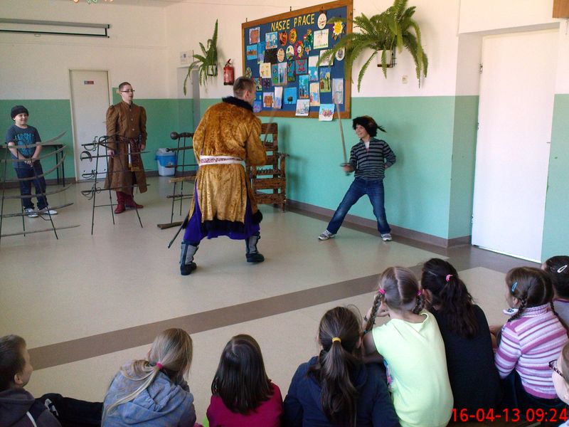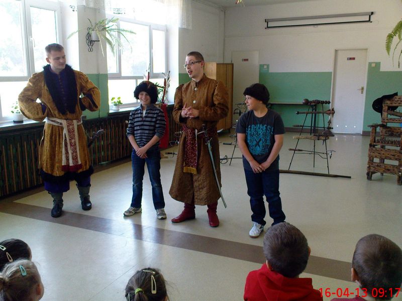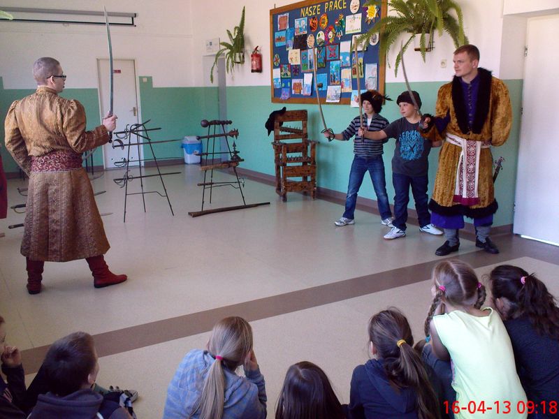 Grupa artystyczna „Rekonstrukto” udzieliła nam żywej lekcji historii, prezentując obyczaje i kulturę danej epoki. Mogliśmy zobaczyć jak wyglądało życie szlachty, czym się zajmowali młodzi kawalerowie, w jaki sposób się bawili i walczyli między sobą. Ponadto mieliśmy okazję oglądnąć kolekcję broni, ekwipunek i uzbrojenie ówczesnego żołnierza, a także poznać narzędzia tortur jakimi się wtedy posługiwano, chcąc ukarać np. czarownice.