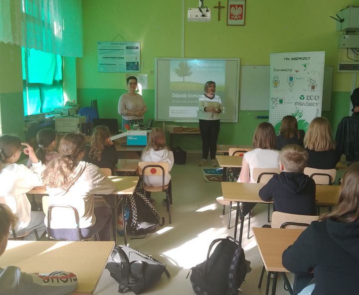Celem spotkania było podniesienie świadomości ekologicznej uczniów kl. IV-VIII oraz przypomnienie zasad dotyczących segregacji śmieci.