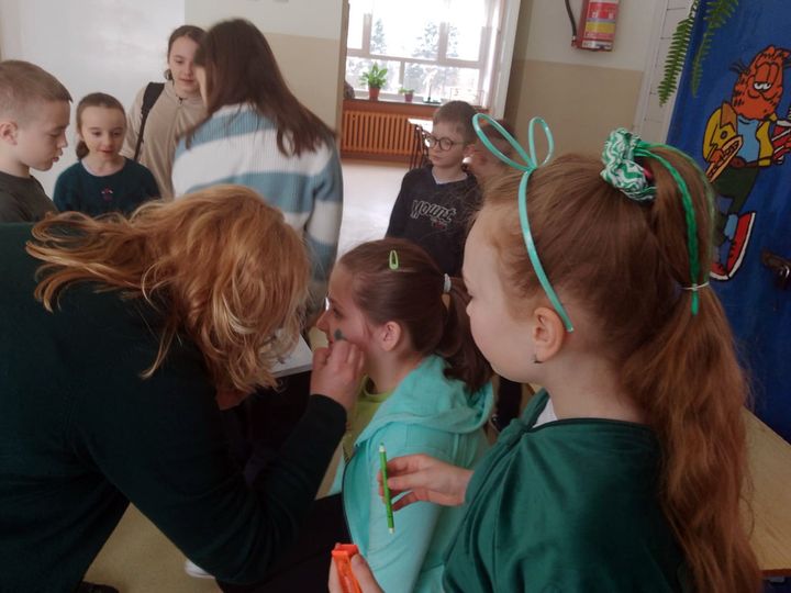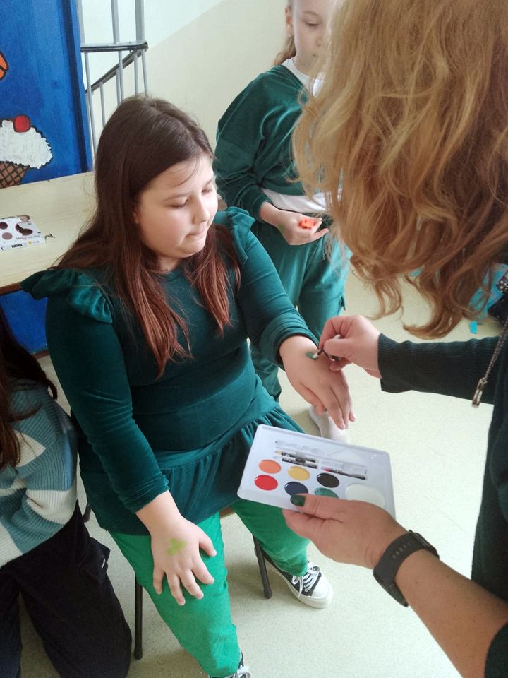 W ramach obchodów tego irlandzkiego święta przygotowaliśmy także mnóstwo atrakcji. Dzieci miały okazję pomalować swoje buzie i rączki na zielono, ozdabiając je symbolem czterolistnej koniczynki – charakterystycznego amuletu, który kojarzy się z Irlandią. Malowanie buziek sprawiło dzieciom ogromną frajdę, a efekty były naprawdę imponujące.