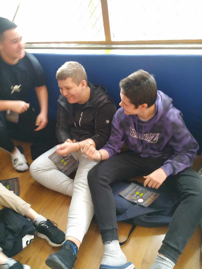 Spotkanie było okazją do zadawania pytań i wymiany doświadczeń, a uczniowie z zainteresowaniem słuchali praktycznych przykładów związanych z zagrożeniami, które mogą spotkać w sieci.