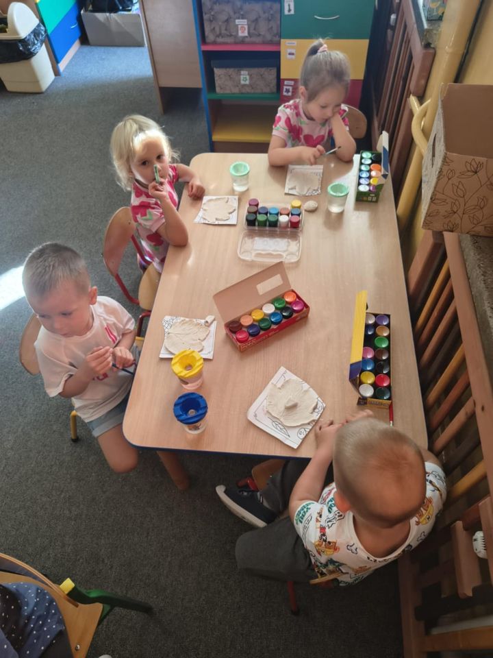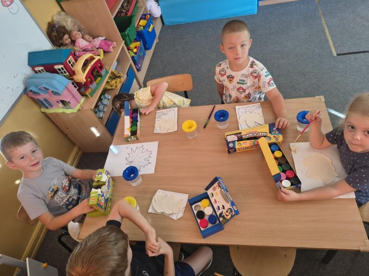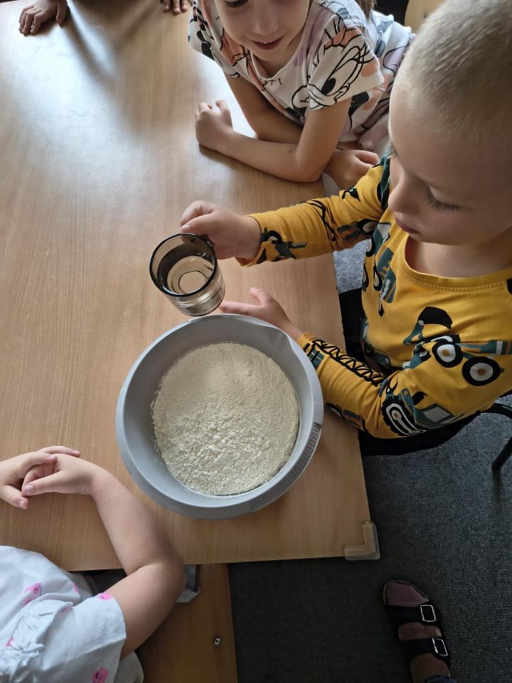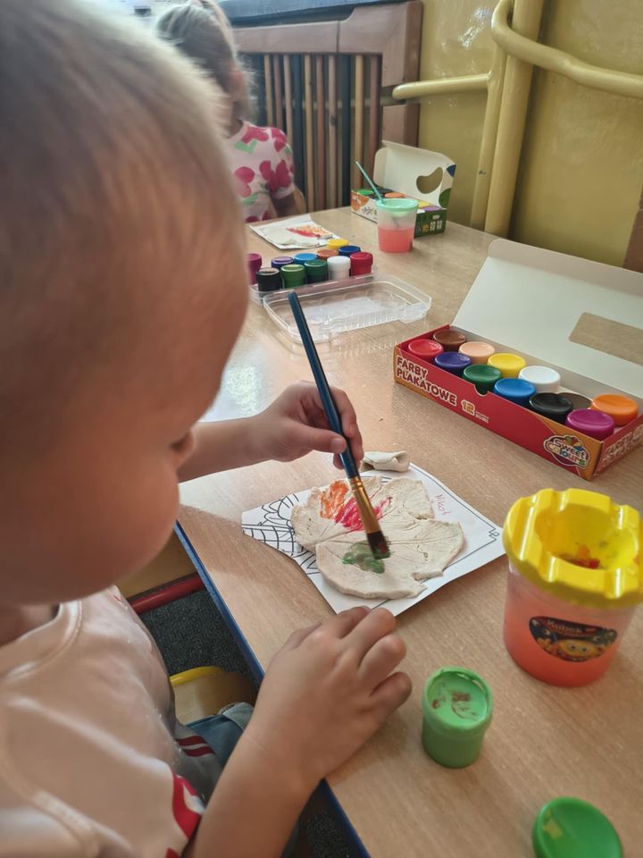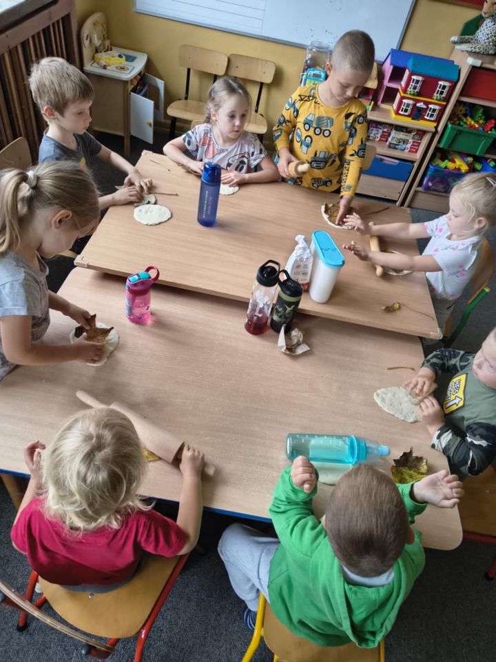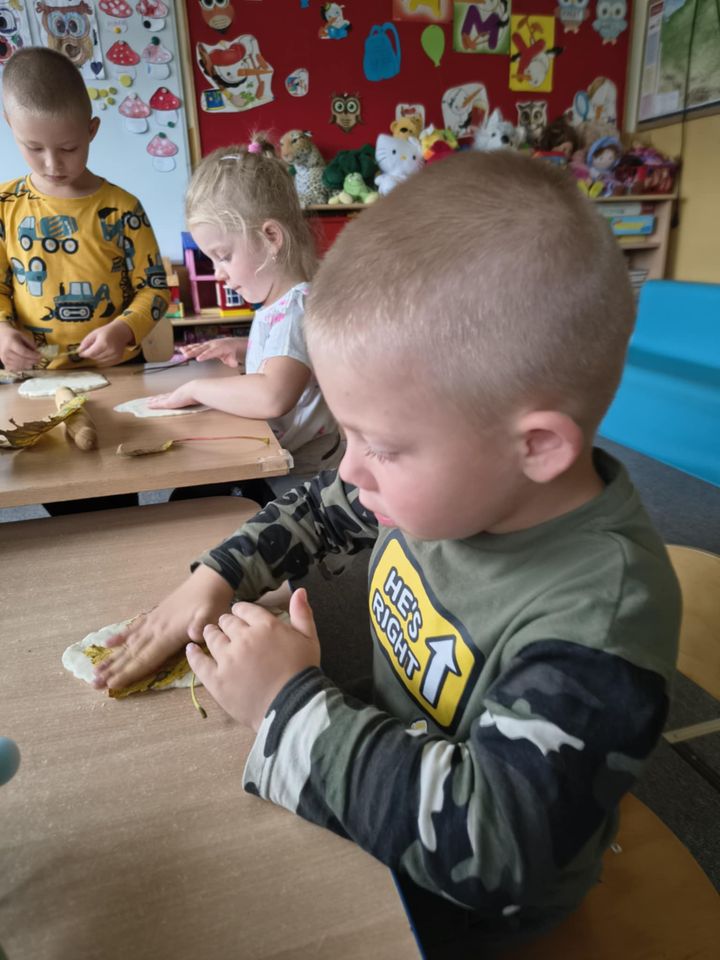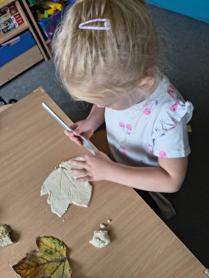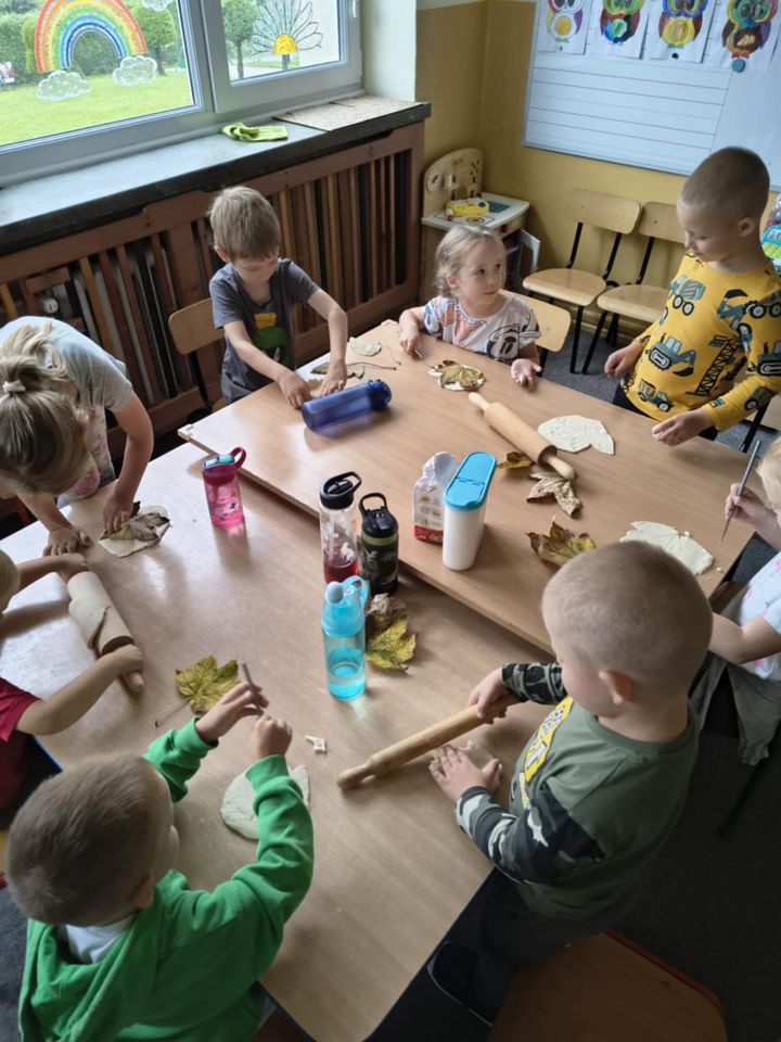 Dzieci przygotowywały oraz wyrabiały ciasto z masy solnej, a następnie je wałkowały. Na takim cieście odbijały liście.