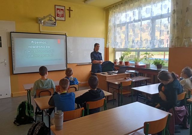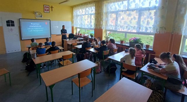 Dziś naszą szkołę odwiedziła asp. Natalia Brzozowska z Komendy Powiatowej Policji w Lesku, która spotkała się z uczniami klas III–VI. Tematem spotkania była przemoc rówieśnicza – jak ją rozpoznać, jak reagować i jak jej zapobiegać.