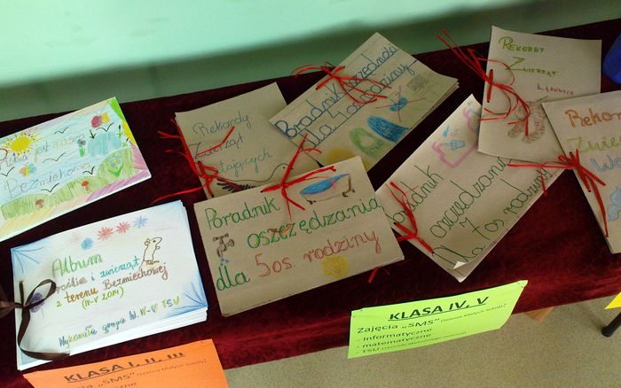 Na początku uczniowie klas IV – VI prezentowali rodzicom, kolegom, koleżankom swoje projekty wykonane na dodatkowych zajęciach pod kierunkiem nauczycieli w ramach unijnego projektu SMS – Szansa Małych Szkół. Dodatkowo opowiadali o swoich umiejętnościach i zainteresowaniach, dzielili się wiedzą, którą zdobyli. Celem zajęć realizowanych w naszej szkole od lutego b.r. jest rozbudzanie w dzieciach ciekawości świata, chęci jego poznawania, stwarzanie warunków do odkrywania tego co nieznane i wspieranie ich intelektualnego rozwoju. Opiekunowie starają się pokazać oraz udowodnić uczniom, że w każdym z nas jest pewien potencjał i należy go rozwijać. Nie musi to być wcale trudne i nieprzyjemne. Okazuje się, że przy odrobinie chęci, cierpliwości i dociekliwości, współpracując z rówieśnikami oraz mając do pomocy nauczyciela, służącego dobrą radą można w sposób aktywny i twórczy wykonywać wspaniałe rzeczy a przy tym sporo się uczyć.
