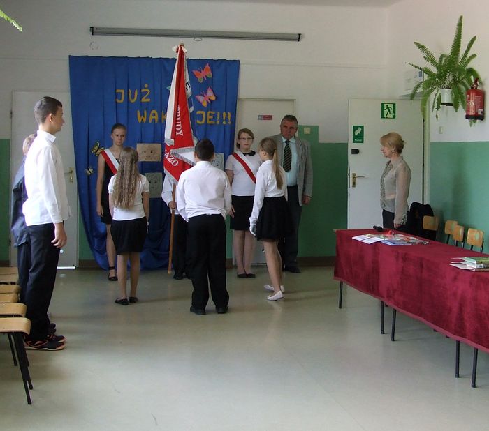 Uczniowie klasy szóstej przekazali sztandar szkoły uczniom obecnej klasy czwartej, a w roku przyszłym klasy piątej. Są to: Marcelina Kardasz, Katarzyna Latusek oraz Kacper Bielak.