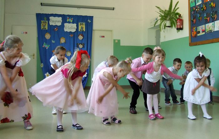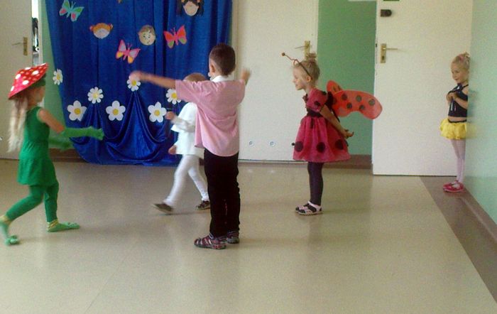 Wreszcie o godzinie 11.00 rozpoczęto uroczystość. Na początku starszaki popisywały się swoimi umiejętnościami i wiadomościami. Udowodniły, że znają cyferki od 1 – 10, kolory, kształty, niektóre literki, dni tygodnia. Natomiast młodsze dzieci nauczyły się wierszyków pożegnalnych w treści których, zawarte były słowa podziękowań za wspólne zabawy w przedszkolu a także życzenia wszelkiej pomyślności na drodze dalszej edukacji. Również maluchy dedykowały starszakom inscenizację Heleny Blecherowej „ Kapelusz Muchomora”. Wszyscy aktorzy przygotowanego utworu, występowali w przepięknych strojach. Publiczność zachwycała się również tańcami i pląsami dzieci.