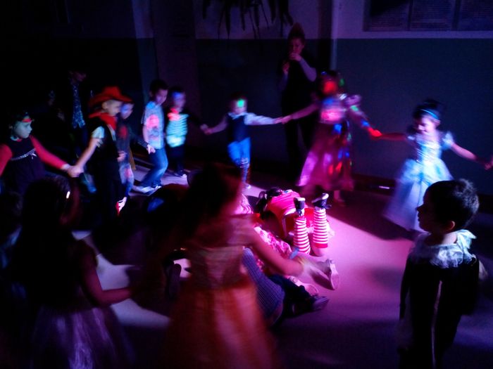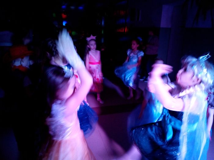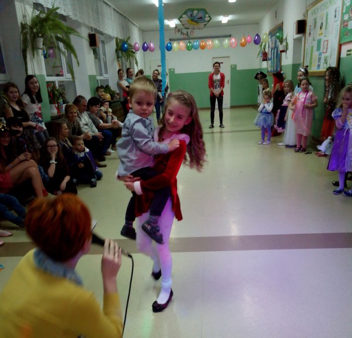 Uczniowie młodszych klas licznie przybyli w pięknych i pomysłowych strojach, wcielając się w różne postacie. Przy błysku profesjonalnego oświetlenia (mimo wcześniejszych kłopotów z prądem;)) i dźwiękach największych przebojów, prezentowanych przez DJ, wszyscy bawili się doskonale.