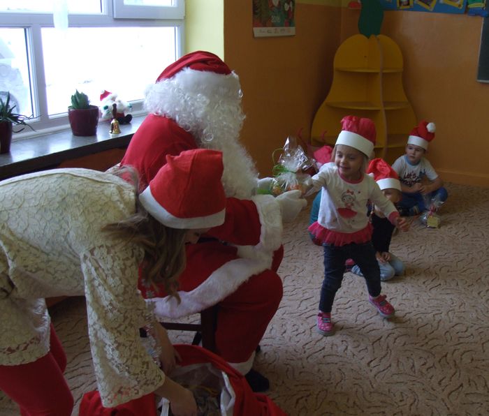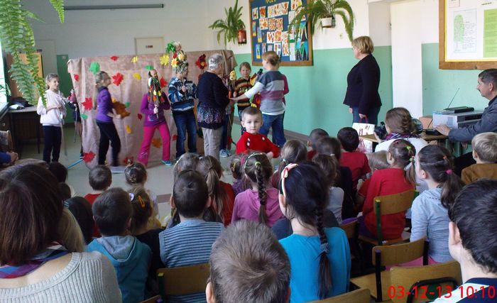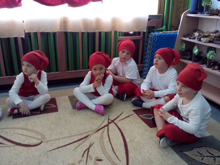 Rozpoczęła się uroczystość – w sali pojawiły się „Krasnale” w pięknych czerwonych strojach. To właśnie one recytowały wiersze o samodzielności, odwadze, śpiewały piosenki i tańczyły w podskokach jak tylko najładniej potrafiły.