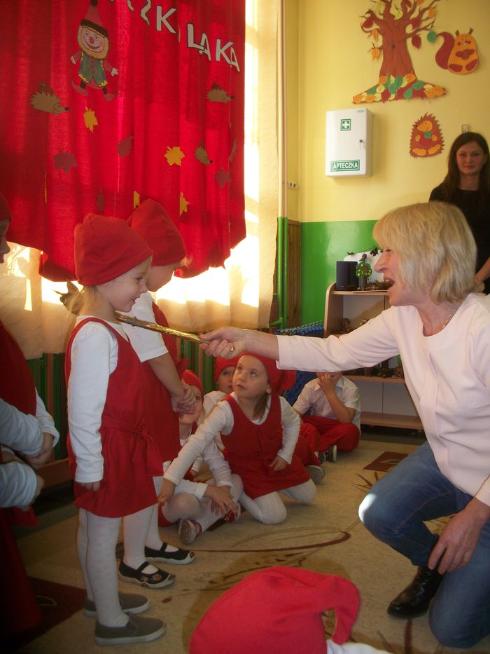 Nie byłoby na uroczystości pasowania, czerwonych Krasnali gdyby nie pomoc mamy 4 – letniej dziewczynki. Pani Barbara Zanewiat, uszyła bezinteresownie dla wszystkich przedszkolaków piękne stroje „Krasnali”. Szycie wymagało poświęcenia cennego czasu, pomysłowości i zaangażowania. Za pomocną dłoń w imieniu Fundacji „ Elementarz” serdecznie dziękuję.