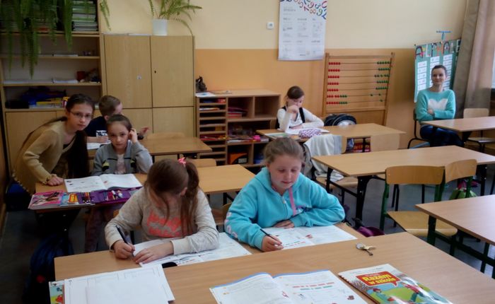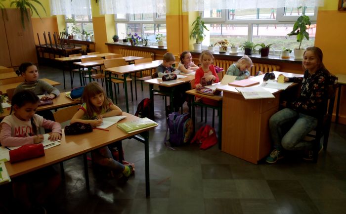 W tym roku dzień 21 marca był jak zwykle pełen emocji. Pani Wiosna „zakłóciła” nieco panujący dotychczas porządek. Na dwóch pierwszych lekcjach miała miejsce niecodzienna zamiana. Uczniowie z klas VI – VI stali się nauczycielami i prowadzili lekcje, natomiast nauczyciele cofnęli się w czasie, zasiedli w ławkach i zostali uczniami. Mimo, że były to przeżycia niezwykłe to na tym się nie skończyło.
