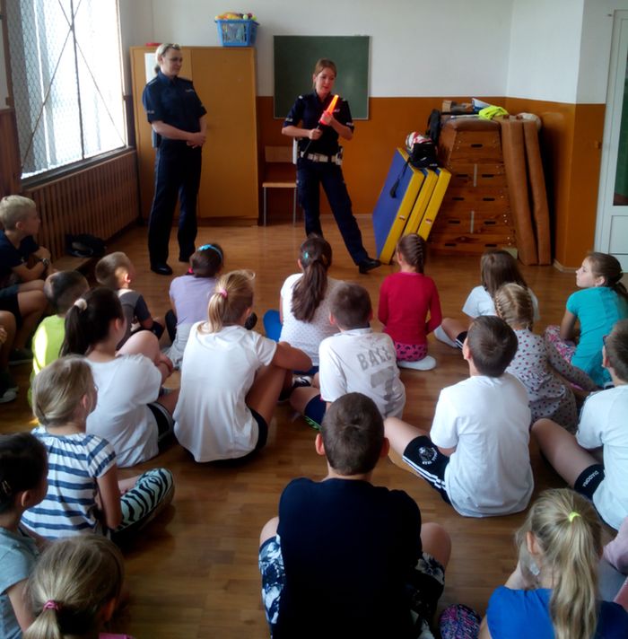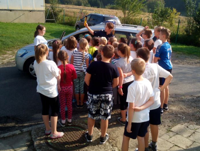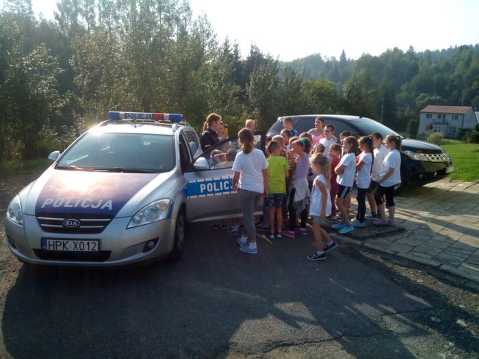W ramach edukacji w tym kierunku, 13 września uczniowie klas 0-VI uczestniczyli w spotkaniu z policjantkami z Powiatowej Komendy w Lesku. Mieli okazję porozmawiać o zachowaniu bezpieczeństwa w drodze do szkoły i poza szkołą. Panie omówiły zasady poruszania się po ulicy, chodniku i podczas jazdy rowerem. Zwróciły uwagę na niebezpieczeństwa, jakie mogą czyhać na dzieci w kontaktach z obcymi, omówiły sposoby unikania ich. Ponadto podkreśliły, jak ważną rolę pełnią elementy odblaskowe, które każdy uczeń powinien posiadać.