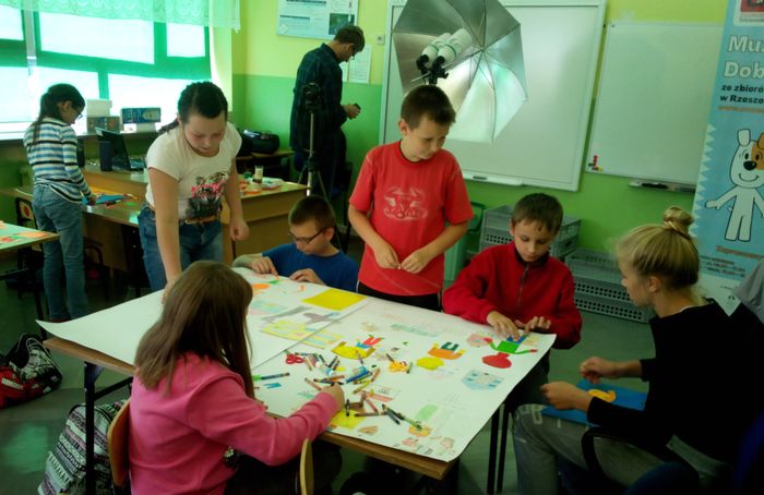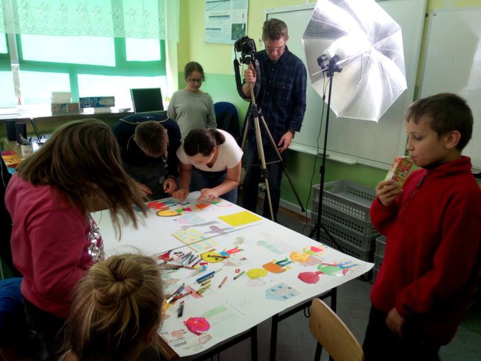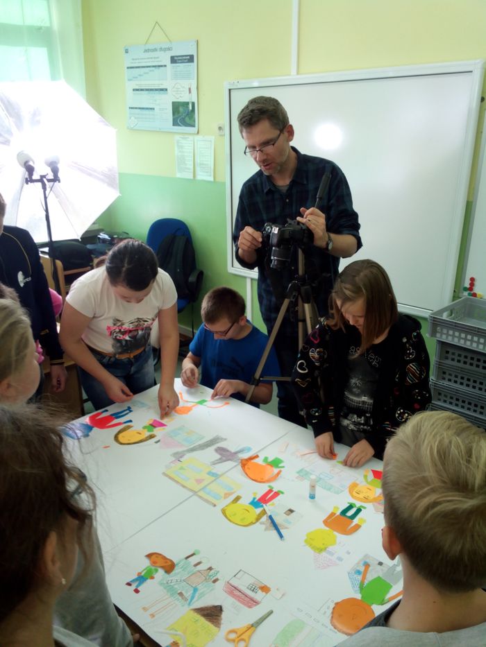 Podczas zajęć uczniowie klas IV-VI, pod czujnym okiem organizatorów, projektowali scenografię i postacie, które następnie stały się bohaterami wspólnie nakręconego filmu.