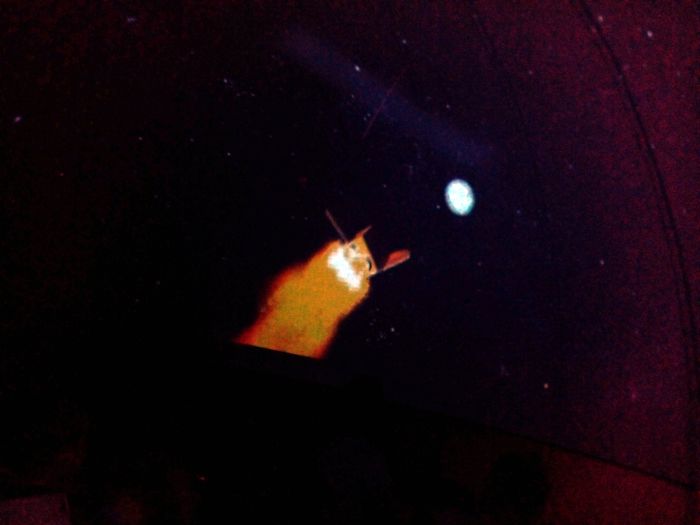 Seans odbył się we wnętrzu ogromnej, nadmuchiwanej kopuły, która stanowiła idealną namiastkę kosmosu. Dzieci miały okazję oglądnąć układ słoneczny, gwiazdozbiory, księżyc, słońce oraz dowiedzieć się wielu ciekawych rzeczy o poszczególnych planetach. Kiedy wszystkie usiadły w kręgu, nad ich głowami rozgwieździło się niebo i rozpoczęła się bardzo ciekawa podróż z bohaterami filmu. Zaciemnione wnętrze zapewniło niepowtarzalny klimat i umożliwiło dogłębne przeżycie tej niesamowitej projekcji.