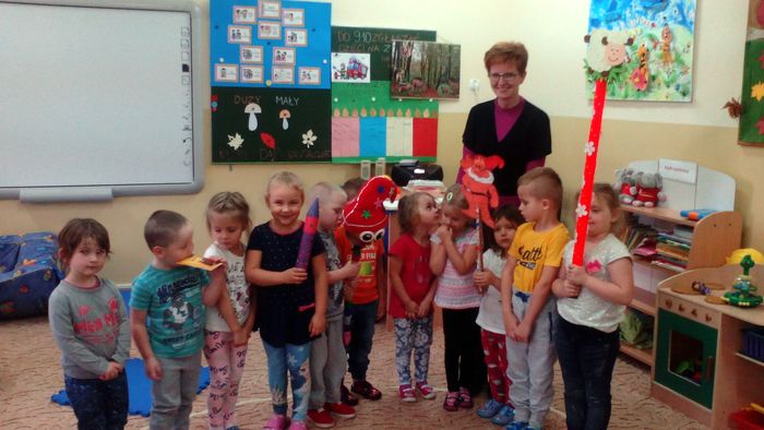 Dzieci wraz z rodzicami wykonały piękne i bardzo pomysłowe różdżki. Przy wyborze zwycięzców pod uwagę brane były nie tylko pomysł i estetyka wykonania, ale także trwałość. Spośród czterech niezwykłych prac, p. Bożena – nauczyciel języka polskiego – miała zdecydować, która różdżka zdobędzie I miejsce i miałaby zostać wykorzystana podczas uroczystego pasowania dzieci na przedszkolaków. Podjęcie decyzji było trudne, ponieważ dwie różdżki najbardziej przykuwały uwagę. P. Bożena, wychowawca oraz obecni rodzice doszli do wniosku, iż ostateczną decyzję podejmą przedszkolaki – wskazując po kolei, która z dwóch prac podoba się bardziej. Tym sposobem, głosami 7 do 5 wygrała różdżka – krasnal, wykonana przez braci: Filipa (5l.) i Łukasza (3l.) oraz ich rodziców.