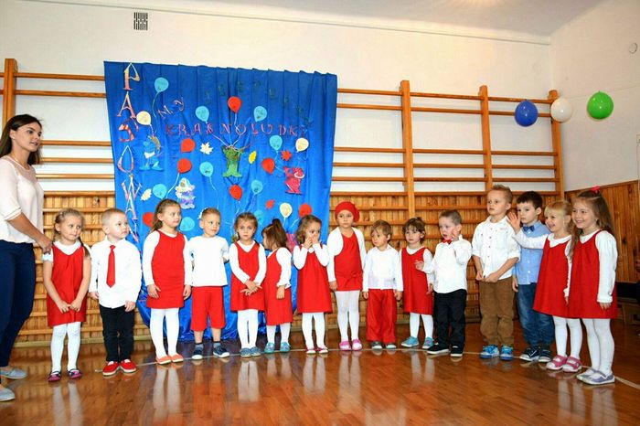 Odświętnie ubrane maluchy recytowały wiersze, śpiewały i tańczyły zamieniając się w prawdziwych krasnali, a po występach uroczyście poprosiły panią dyrektor o pasowanie. W odpowiedzi na prośbę pani dyrektor Lucyna Matuszewska kładła na ramieniu każdego dziecka magiczną różdżkę – krasnala i nadawała mu miano przedszkolaka. Po pasowaniu wychowawczyni Joanna Latusek gratulując, wręczyła każdemu przedszkolakowi pamiątkowy dyplom.