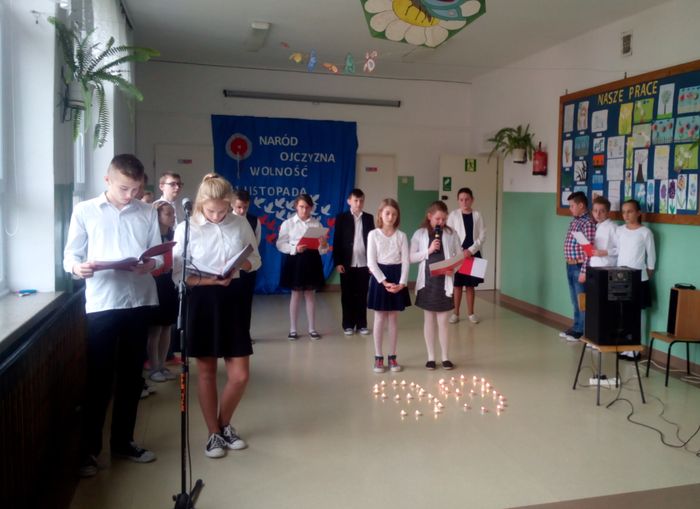 11 listopada 2017 r. w naszej szkole odbyła się uroczysta akademia z okazji Narodowego Święta Niepodległości. W tym roku obchodziliśmy 99. rocznicę wyzwolenia naszego kraju po 123 latach zaborów. Uczniowie klas IV-VII uświetnili ten ważny dzień programem artystycznym przygotowanym pod kierunkiem pani Diany Marcyszyn.