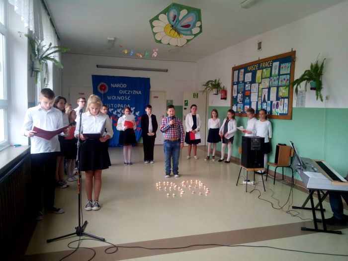 Narratorzy, z należytym szacunkiem przedstawili historię rozbiorów, a pozostali uczestnicy deklamowali wiersze patriotyczne. Podczas całej uroczystości paliły się biało czerwone świece upamiętniające patriotów poległych za Ojczyznę.