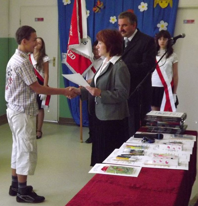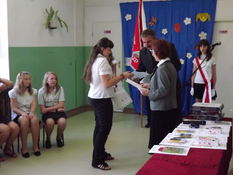 Następnie pani dyrektor podziękowała wszystkim za całoroczną pracę, wręczyła świadectwa z wyróżnieniem oraz nagrody za bardzo dobre wyniki w nauce, wzorowe zachowanie. Gratulowała młodzieży osiągnięć, a rodzicom dziękowała za okazane wsparcie, zaangażowanie i trud włożony w wychowanie dzieci.
