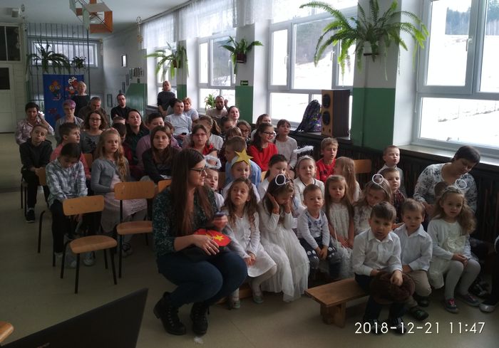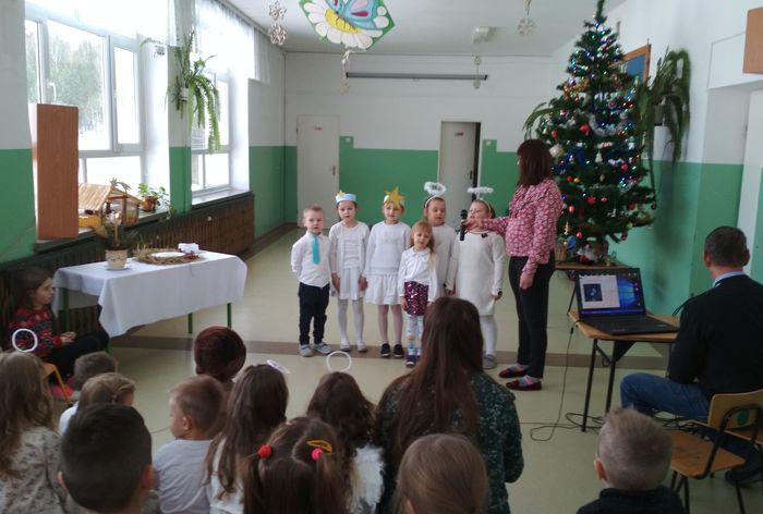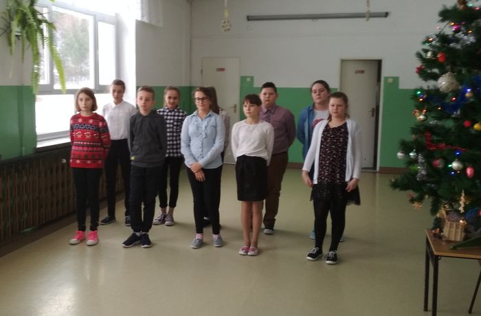 Kolejnym elementem uroczystości było śpiewanie pastorałek. Każda z klas prezentowała utwór wcześniej przez siebie wybrany i przygotowany. Czas płynął szybko i bardzo miło. Po spotkaniu wszyscy, przepełnieni świątecznym nastrojem, udali się do domów przygotowywać się do Bożego Narodzenia.