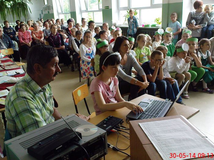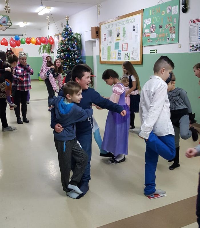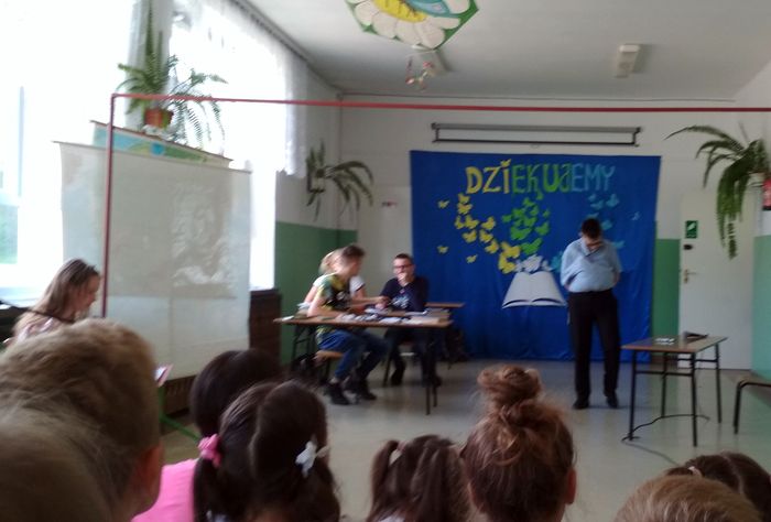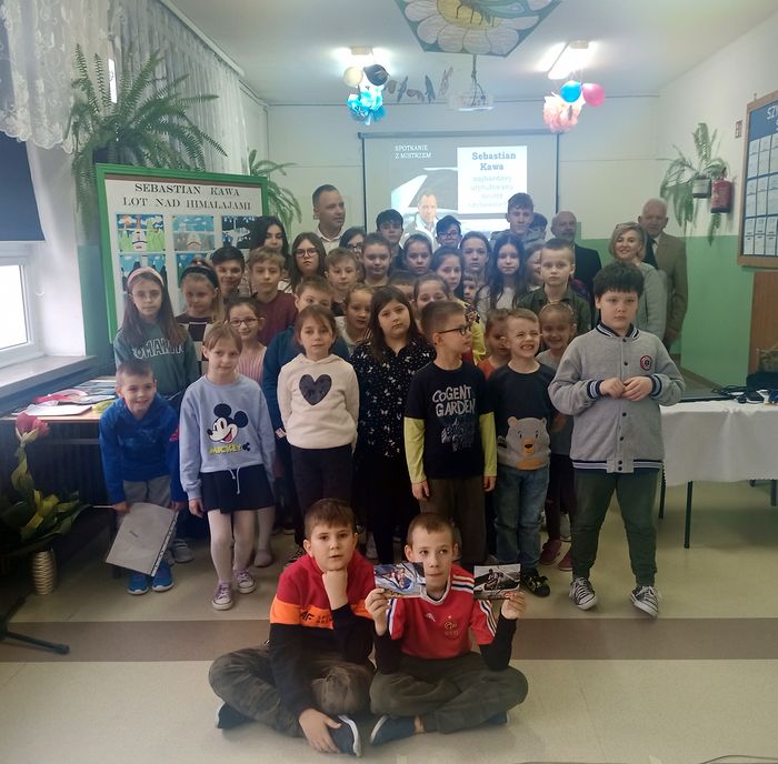 Kolejnym, oczekiwanym przez wszystkich, punktem spotkania były pamiątkowe zdjęcia. Każdy z obecnych mógł stanąć do fotografii z Mistrzem. Chętnych nie brakowało. Gość z przyjemnością pozował do zdjęć i rozdawał autografy. Na pamiątkę spotkania uczniowie podarowali Mistrzowi portret wykonany techniką komiksu, a dzieci z oddziału przedszkolnego odznaczyły Pana Sebastiana „złotym medalem”.