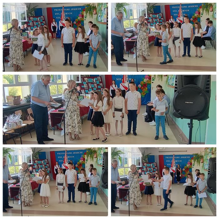 Na tym jednak nie skończyło się poszukiwanie i przywoływanie wiosny. Aby zachęcić ją do przybycia każda klasa postanowiła przygotować (dowolną techniką) wspaniały plakat, będący ilustracją wylosowanego wiosennego przysłowia. Do pracy zmobilizowali się wszyscy. Każdy uczeń chciał, aby dzieło jego klasy było najpiękniejsze.