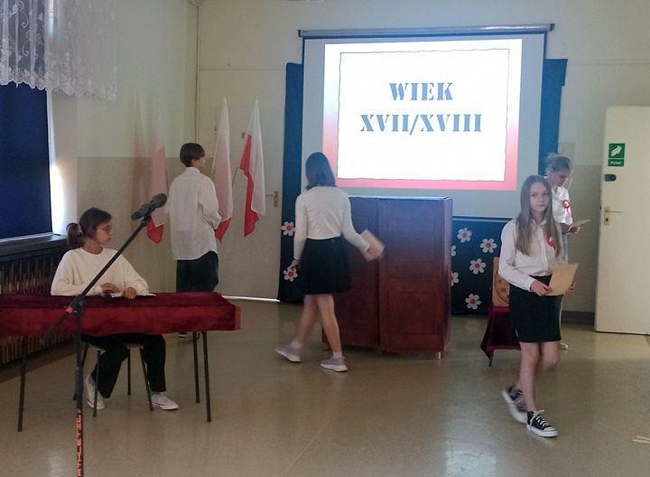 Po powitaniu wszystkich przez panią dyrektor Lucynę Matuszewską i odśpiewaniu hymnu szkolnego miała miejsce ceremonia przekazania sztandaru. Uczniowie kl. VI – chorąży Kacper Bielak oraz asysta Marcelina Kardasz i Katarzyna Latusek  przekazali insygnia i sztandar nowemu pocztowi: chorążemu Krzysztofowi Latuskowi oraz asyście Zuzannie Stachyrze i Wiktorii Zanewiat. Później nastąpiło  wręczenie uczniom nagród i świadectw z wyróżnieniem a rodzicom listów gratulacyjnych.