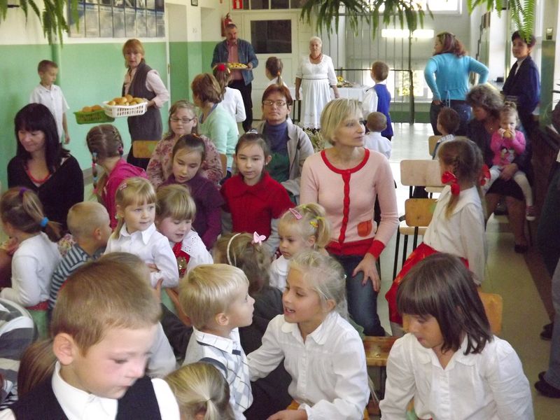 Nauczycielki przedszkola Zofia Przygórzewska i Kamila Matuszewska zaprosiły Starościnę dożynek (dyrektora szkoły – Lucynę Matuszewską) oraz starostę (nauczyciela historii – Janusza Kurconia) do przyjęcia plonów. W tym czasie idący korowód śpiewał starą, tradycyjną pieśń dożynkową „Plon niesiemy plon”. Gospodarze dożynkowi odebrali wieniec, chleb z tegorocznych zbóż, warzywa i owoce.