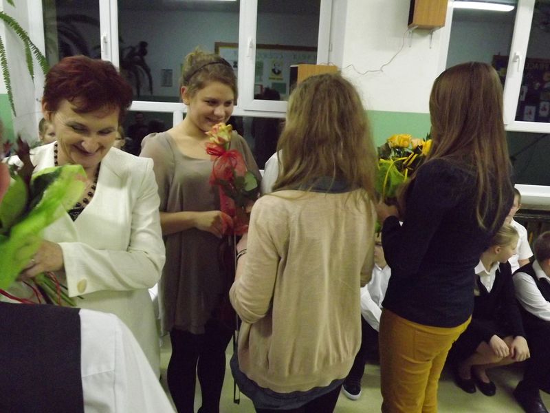 Gdy występy dobiegły końca pani dyrektor bardzo serdecznie podziękowała wszystkim artystom, a uczniowie w dowód wdzięczności każdej z pań podarowali kwiaty.