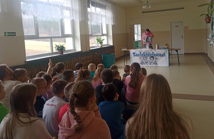 W pokazie wzięli udział wszyscy nasi uczniowie. Już od pierwszych minut prowadzący przykuł ich uwagę – jego poczucie humoru, energia i niesamowite eksperymenty sprawiły, że sala rozbrzmiewała śmiechem i okrzykami zachwytu.