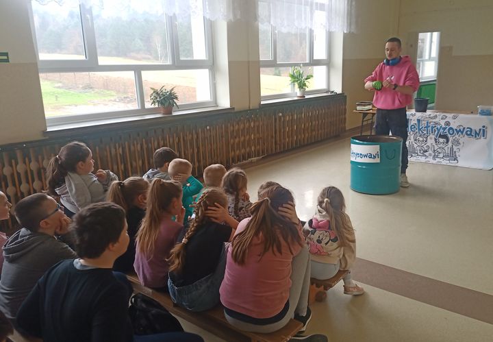 We wtorek 15 kwietnia nasza szkoła miała okazję przeżyć coś naprawdę wyjątkowego. Odwiedziła nas grupa „Zaelektryzowani” – mobilne laboratorium eksperymentów, które udowadnia, że nauka może być nie tylko ciekawa, ale i… widowiskowa!